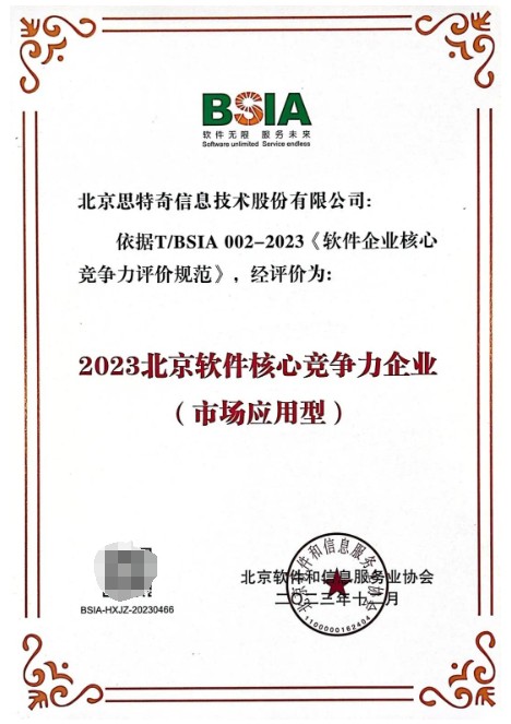 IM电竞IM电竞来源标题:思特奇实力入选2023北京软协“综合实力前百家企业”、“市场应用型核心竞争力企业”